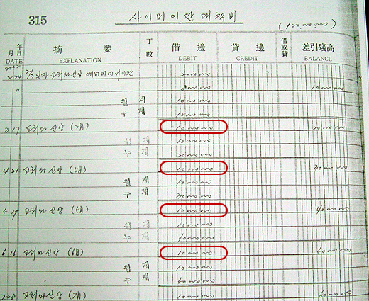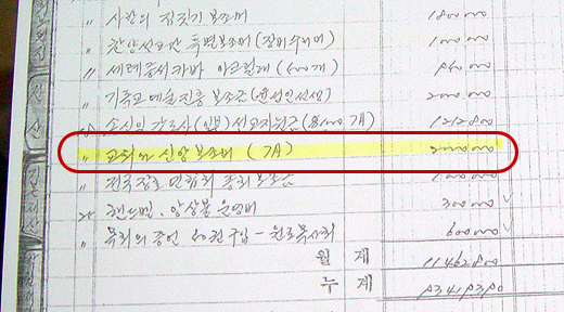 | ▲ 최근 본지가 입수한 K교회 예산 집행 관련 자료 사본. 빨간색 동그라미 표시를 보면 ‘보조비’란 명목으로 최삼경 목사가 설립한 <교회와 신앙>에 자금이 흘러들어갔음을 확인할 수 있다. 1999년부터 2001년까지 3년간 매달 2백만원씩 총 7천 2백만원 상당을 챙겼다. ⓒ베리타스 DB |