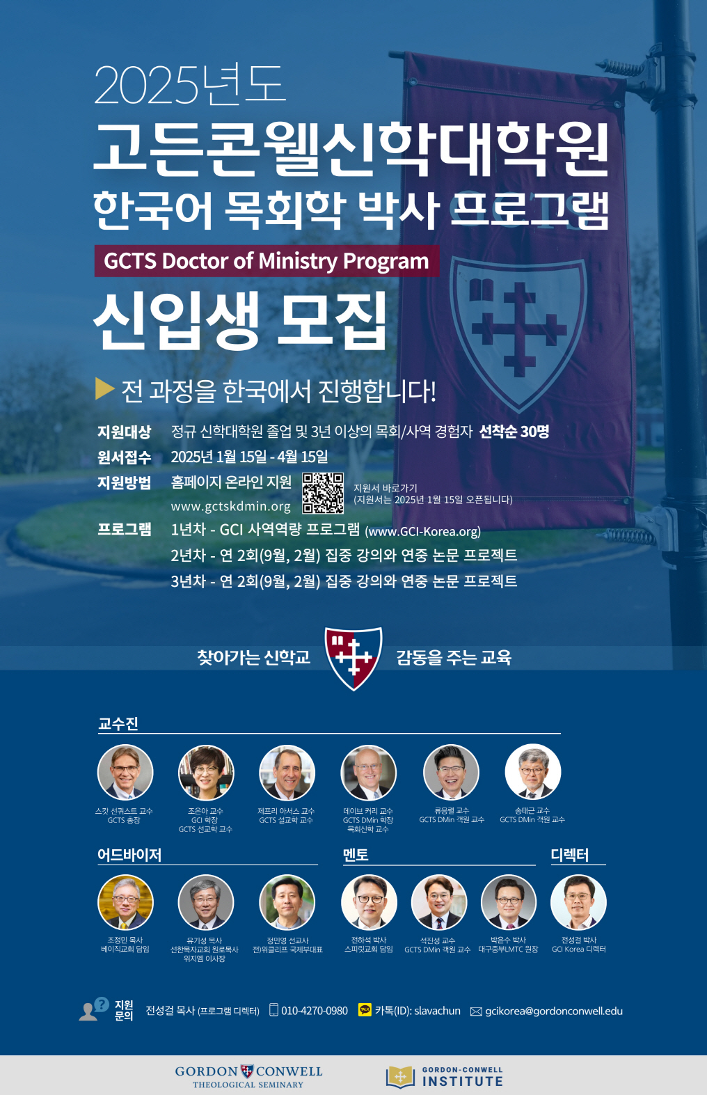 고든콘웰신학대학원 2025 한국어 목회학 박사과정 신입생 모집 포스터. ©고든콘웰신학대학원 제공