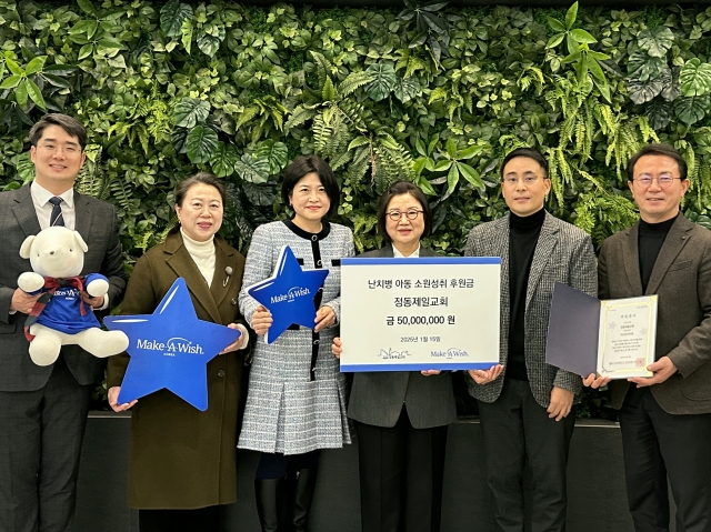 정동제일교회(담임 천영태 목사)가 지난해 크리스마스 시즌을 맞아 모은 성금으로 난치병 아동과 소외계층을 위한 나눔의 손길을 전했다. 교회는 난치병 아동의 소원을 이뤄주는 기관인 메이크어위시에 5000만 원을 기탁했다고 최근 밝혔다. 메이크어위시는 1980년 설립되어 전 세계 난치병 아동들의 소원을 이뤄주는 비영리기관으로, 한국 지부는 2002년에 설립됐다.