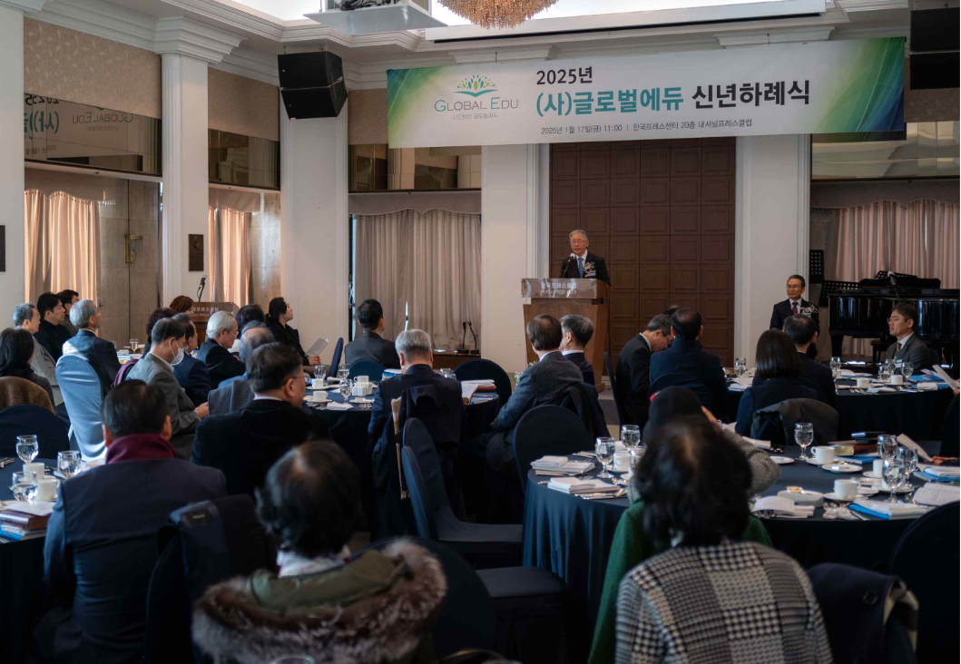 또한 “김진표 전 국회의장님을 글로벌에듀의 명예이사장으로 추대해 더욱 힘차게 나아갈 수 있게 되었다”면서, “2025년, 우리 모두의 힘을 모아 더 나은 세상을 만들어가자”고 요청했다.