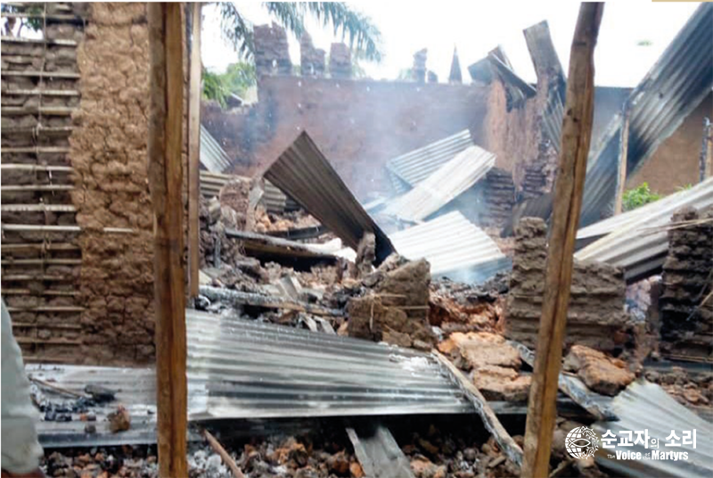이슬람 극단주의 ‘민주군사동맹’은 밀림으로 사라지기 전에 교회 건물을 파괴하고, 내부의 모든 것을 부수고, 벽에 온통 인분을 발라놓았다. 목격자들에 따르면 그들은 또한 학교를 파괴하고, 병원을 약탈하고, 많은 주택과 건물을 불태웠다.