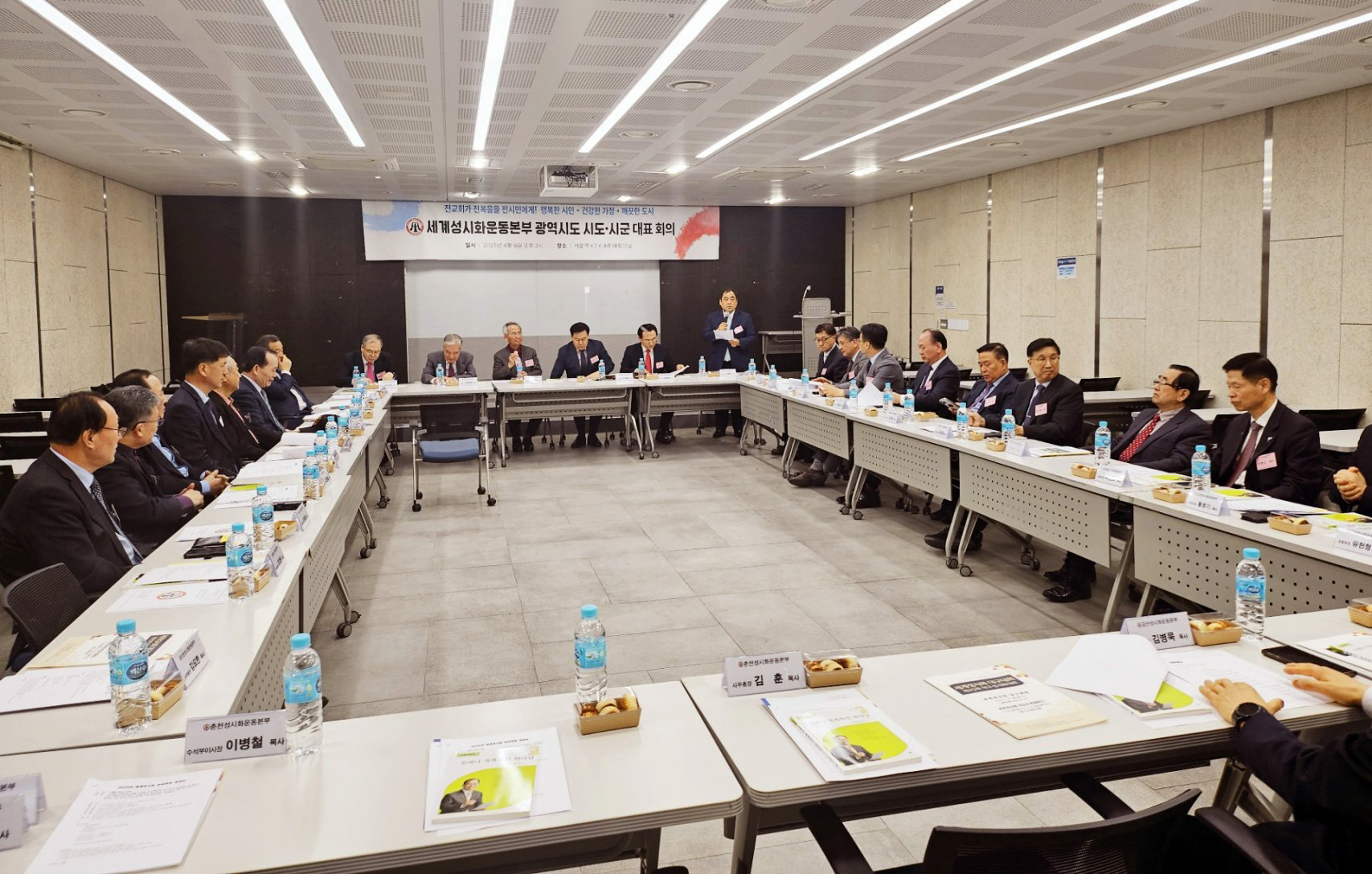 이날 회의에는 전국 군수송열차 및 서울역을 비롯한 전국 열차역에 있는 TMO장병휴게소 사역을 하고 있는 장동일 교수(성악가)가 특송을 했으며, 4/14미니스트리 이사장 최완기 목사가 참석해 다음세대 사역을 위해 성시화운동과 협력할 것을 제안했다.