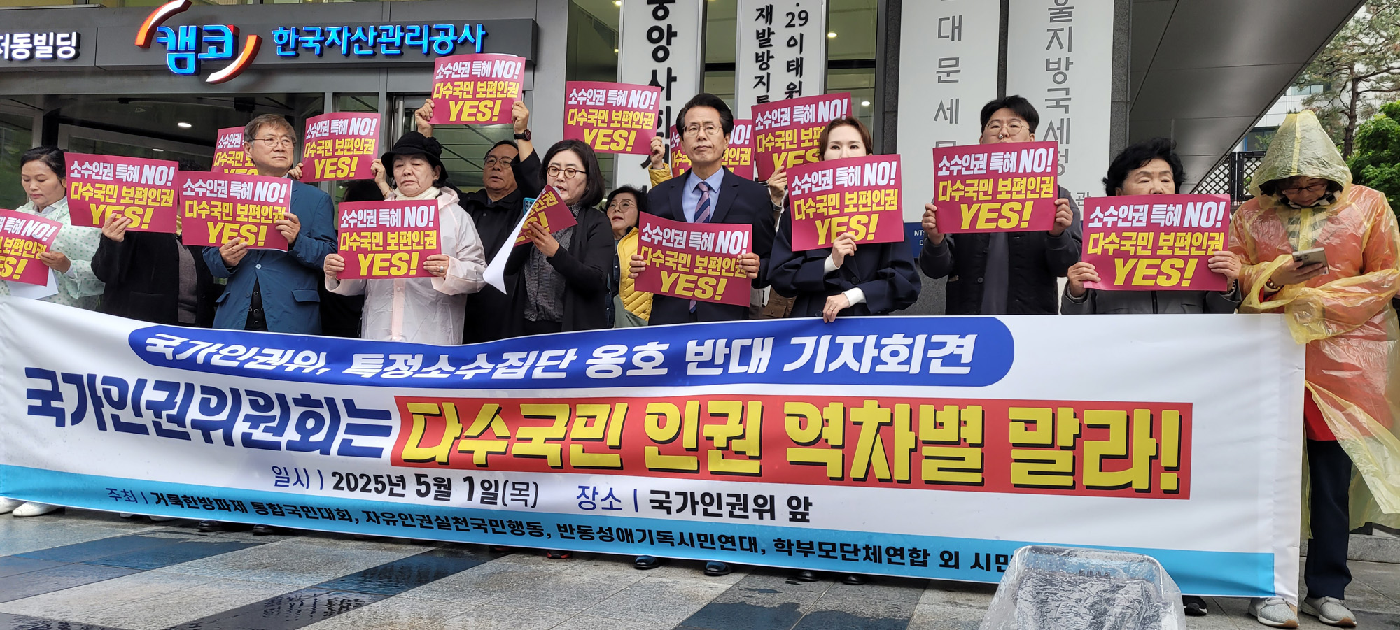 이들은 “2017년부터 인권위가 다수 국민의 비판·반대를 무릅쓰고 서울퀴어문화축제를 지원해 온 사실에 대해 아무런 문제의식을 갖고 있지 못한 채 인권위가 9년 만에 불참하기로 한 사실을 큰 잘못이라도 한 양 호들갑떨고 있다”며 “이는 지금까지 우리가 인권위로부터 차별·배제당해온 사실은 외면한 채 자신들의 기득권을 수호하기 위해 몸부림치는 행태로 보이며, 국민적 동의를 얻기 어려운 응석받이 행동처럼 보일 뿐”이라고 지적했다.