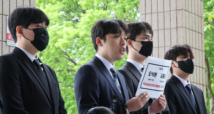 9일 대한의과대학·의학전문대학원학생협회(의대협)는 경기 과천시에 위치한 고위공직자범죄수사처 앞에서 기자회견을 열고 오석환 교육부 차관과 김홍순 교육부 의대교육지원관을 형사 고발한다고 밝혔다. 이날 고발에는 이선우 의대협 비상대책위원장을 포함한 의대생 17명이 참여했다.
