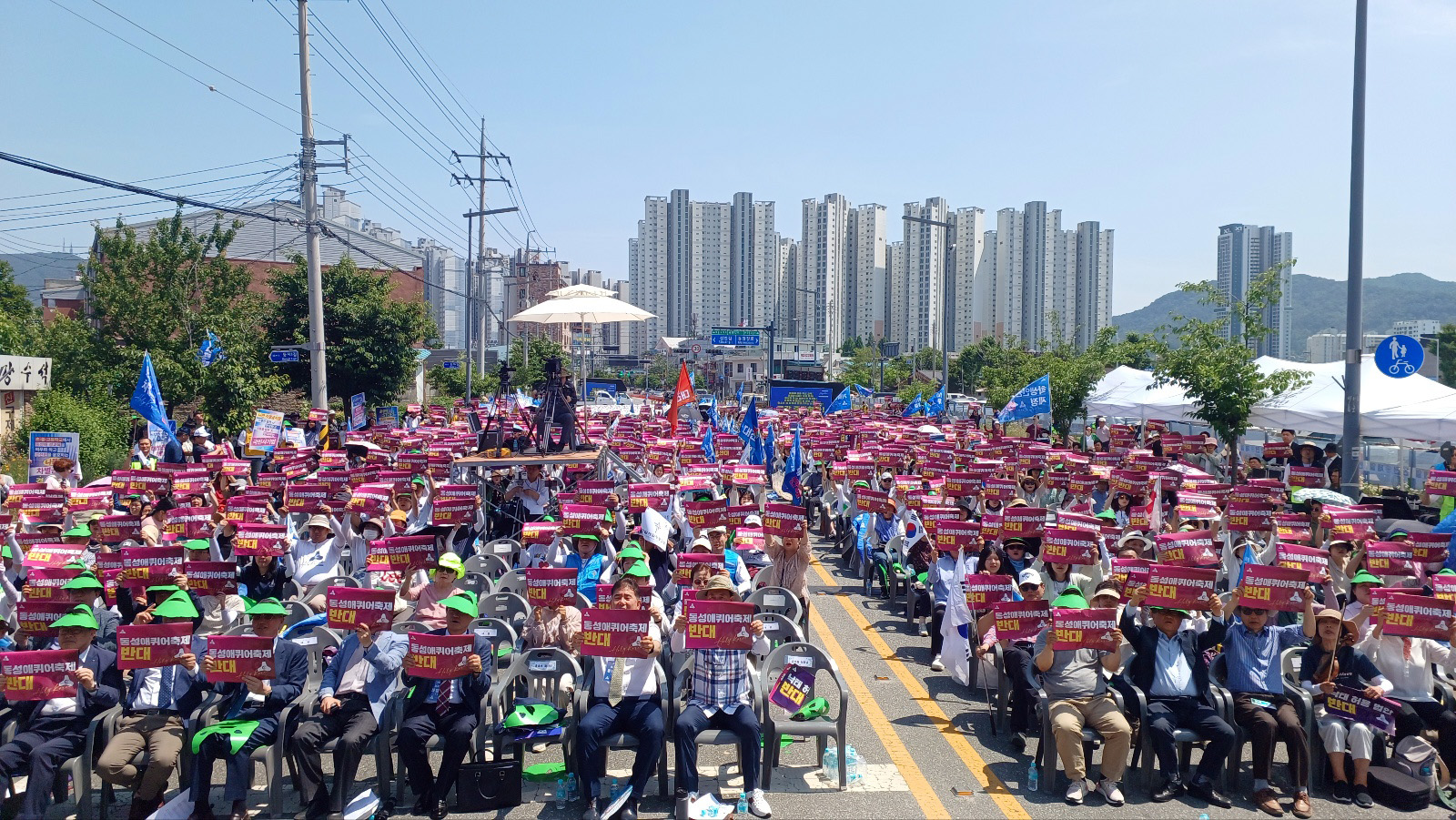 7일 대전에서 제2회 대전퀴어문화축제가 열린 가운데, 같은 시간 대전역 동광장 인근에서 이 행사에 반대하는 ‘거룩한방파제 건강한가정대전시민대회’가 열렸다.