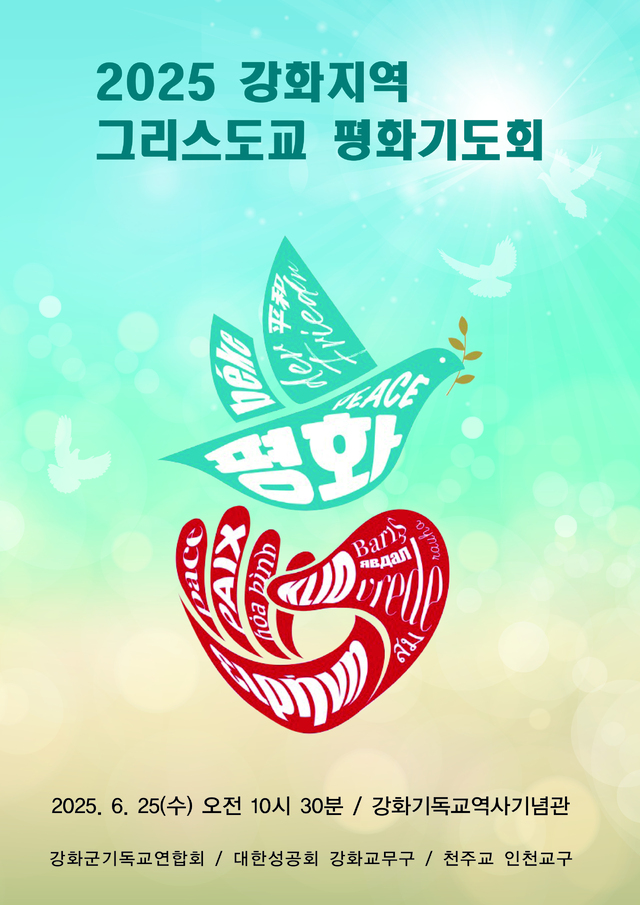 인천 강화지역의 천주교, 성공회, 개신교 신자들이 오는 6월 25일 인천 강화기독교역사기념관에 모여 한반도의 평화를 위한 연합 기도를 드린다. '제2회 강화지역 그리스도교 평화기도회'는 교단과 교파를 초월해 신앙으로 하나 되어 평화를 염원하려는 뜻에서 마련됐다.