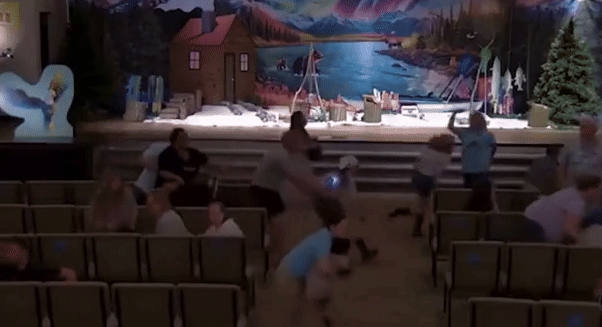 총격범은 전술 조끼를 착용하고 차량에서 내려 교회 쪽으로 접근하면서 무차별적으로 총을 발사했다. 교회 유튜브 라이브 스트리밍 영상에는 예배가 끝나가던 시점 갑작스러운 총성과 함께 공포에 휩싸인 교인들이 의자 뒤로 숨거나 급히 뒷문으로 대피하는 모습이 담겼다.