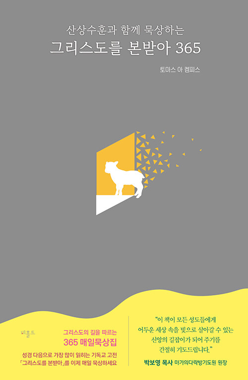 오랜 세월을 넘어 수많은 성도들의 삶을 뒤흔들었던 고전 <그리스도를 본받아>가 새로운 형식으로 독자 곁에 돌아왔다. 바로 365일 매일 묵상 형식으로 재구성된 <그리스도를 본받아 365>다.