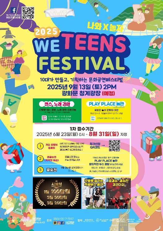 이번 축제는 ‘10대가 될 사람부터 현재 10대, 그리고 10대를 거쳐 온 모든 세대가 함께 만드는 축제’를 목표로 삼았다. 본행사는 9월 13일 오후 2시부터 시작되며, 전국 예선을 거친 청소년 예술가들이 춤과 노래로 실력을 겨루는 경연대회가 중심 프로그램이다. 결승전은 저녁에 진행되며 심사위원 평가와 현장 투표 결과를 합산해 최종 순위가 정해진다. 우승자에게는 상금 100만 원 등 총 150만 원의 상금이 수여된다.