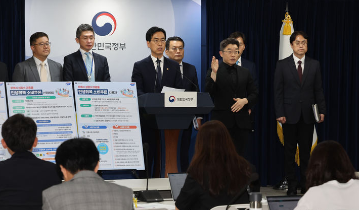 김민재 행정안전부 장관 직무대행은 5일 정부서울청사에서 기획재정부, 보건복지부, 금융위원회 등 관계 부처와 함께 민생회복 소비쿠폰 지급 계획을 발표했다. 전날 국회는 총 31조 8천억 원 규모의 추가경정예산안을 의결했으며, 이 가운데 12조 1,709억 원이 소비쿠폰 사업 예산으로 배정됐다.