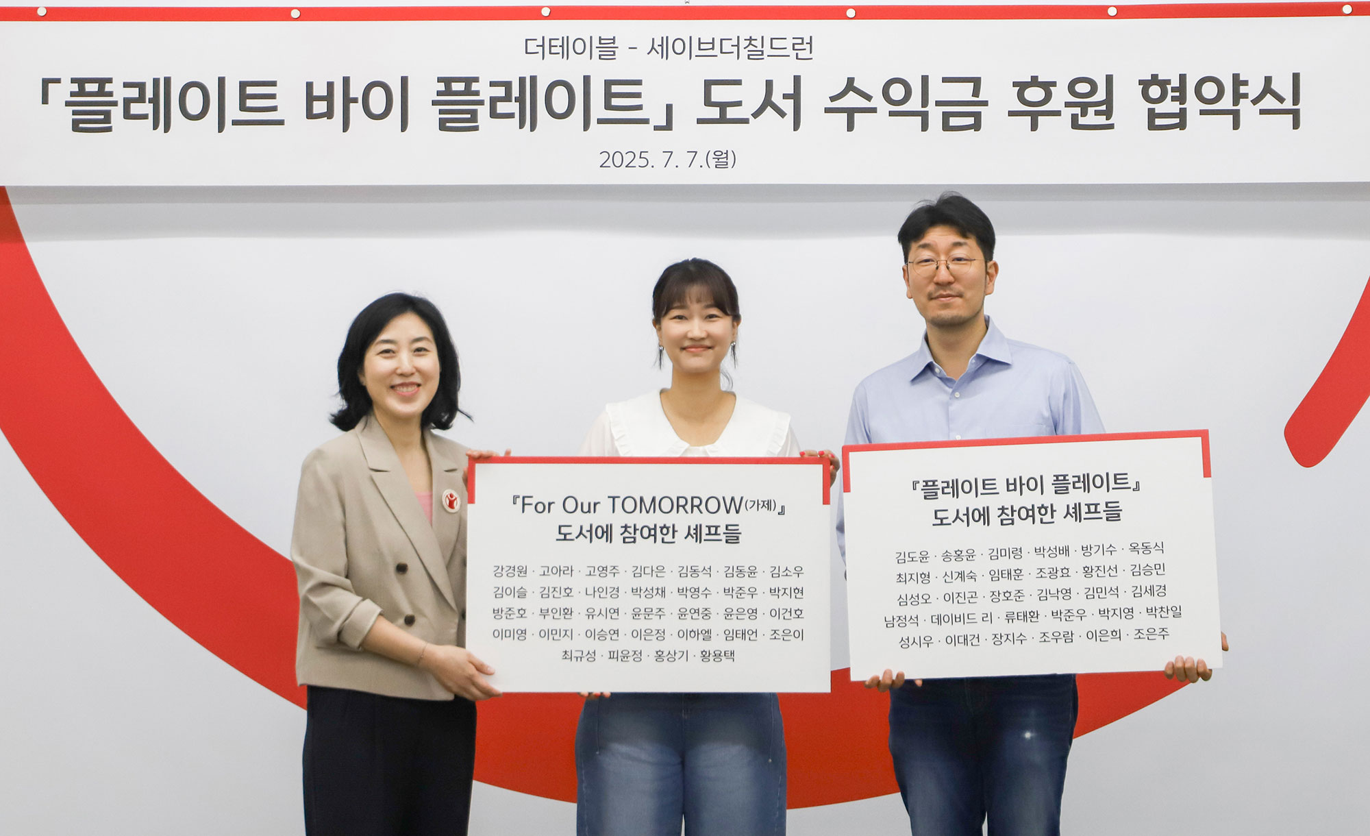 국제아동권리 NGO 세이브더칠드런은 요리 콘텐츠 전문 출판사 ㈜더테이블과 함께 지난 7일 서울 세이브더칠드런 본부에서 저소득층 아동을 위한 ‘아동식사지원사업’ 후원 협약을 맺었다고 21일(월) 밝혔다. 이번 협약을 통해 두 기관은 요리 서적의 판매 수익 일부를 아이들의 건강한 식사를 위해 기부하기로 했다.