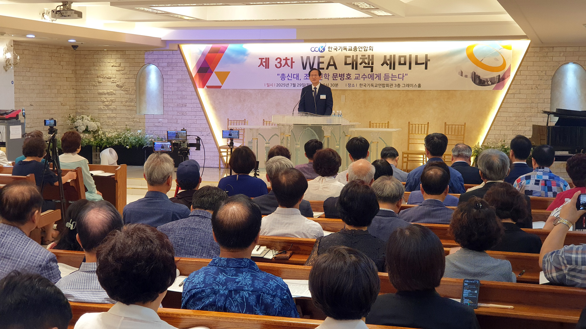 한국기독교총연합회(대표회장 고경환 목사, 이하 한기총)가 29일 한국기독교연합회관 그레이스홀에서 ‘제3회 WEA 대책 세미나’를 개최했다.