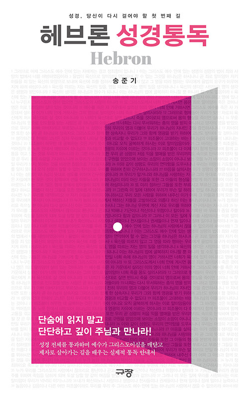 “성경을 읽지 못한 것이 아니라, 하나님과 대화하지 못한 것이다.” <헤브론 성경통독>은 단순한 성경 통독 안내서가 아니다. 이 책은 성경을 ‘읽는 기술’로 접근하지 않고, ‘예수 그리스도와의 만남’으로 이끈다. 독자가 통독의 과정에서 말씀과 직접 대화하고, 그 말씀 앞에 서 있는 자기 자신을 발견하게 하는 책이다.