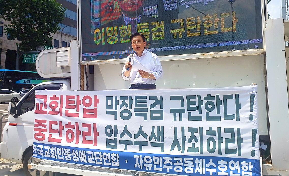 또한 “임명직 공직자인 특검이 기독교 성직자인 목사와 교회, 사택을 수색하고 휴대폰을 압수하는 경천동지할 비행을 저지르며 정의와 공의를 왜곡한다면 주권자인 국민은 반드시 그 책임을 물을 것”이라고 했다.