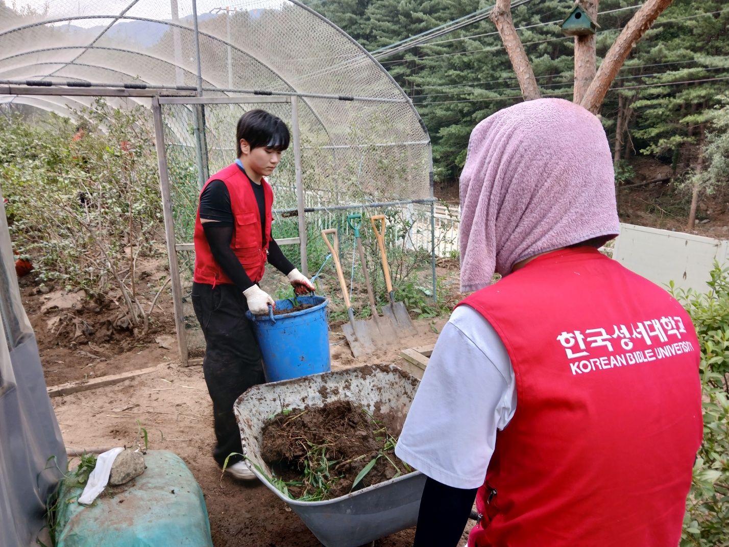 봉사에 참여한 한국성서대 학생들 ©한국성서대