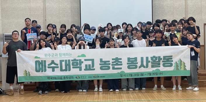 예수대학교(총장 김찬기)가 여름방학을 맞아 지난달 28일부터 30일까지 전북 완주군 고산면 일대에서 농촌봉사활동을 진행했다고 최근 밝혔다. 이번 봉사에는 총 55명의 재학생이 참여해 일손이 부족한 농가를 도왔으며, 지역 주민과의 교류를 위한 다양한 공동체 프로그램도 함께 펼쳐졌다.