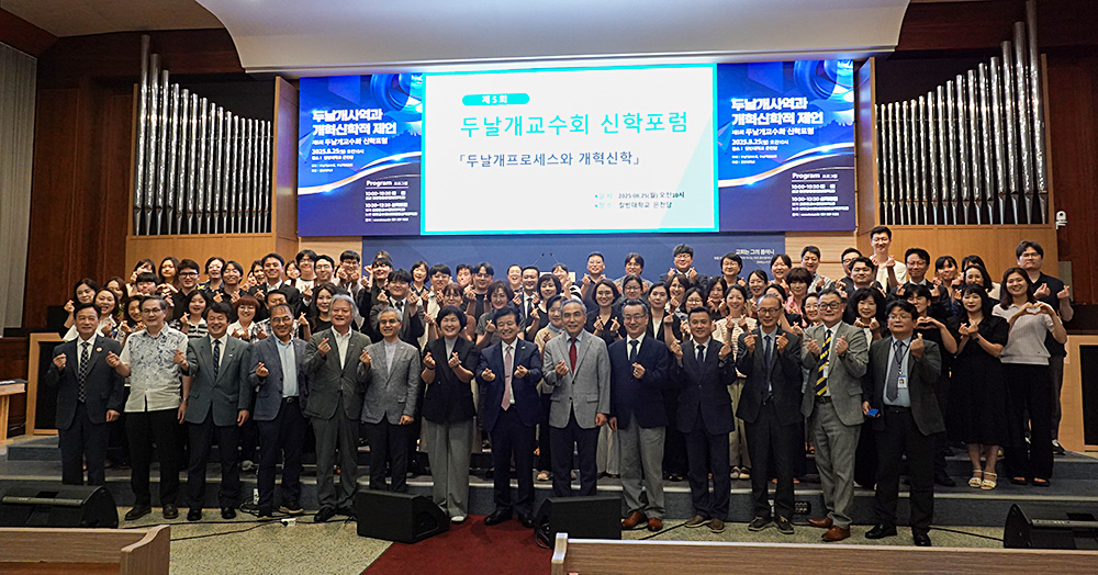 지난 25일 경기 용인 기흥구 칼빈대학교 은천당에서 열린 ‘제5회 두날개교수회 신학포럼’에서는 ‘모든 것이 곧 신’이라는 범신론과 달리, ‘모든 것 안에 신이 있다’는 만유재신론적 배경이 오늘날 삼위일체 교리와 교회론에 가져온 신학적 왜곡 등을 다루고, 말씀과 성령에 대한 개혁신학적 이해에 바탕을 둔 두날개교회 사역을 건강한 교회 회복을 위한 하나의 방안으로 소개했다.
