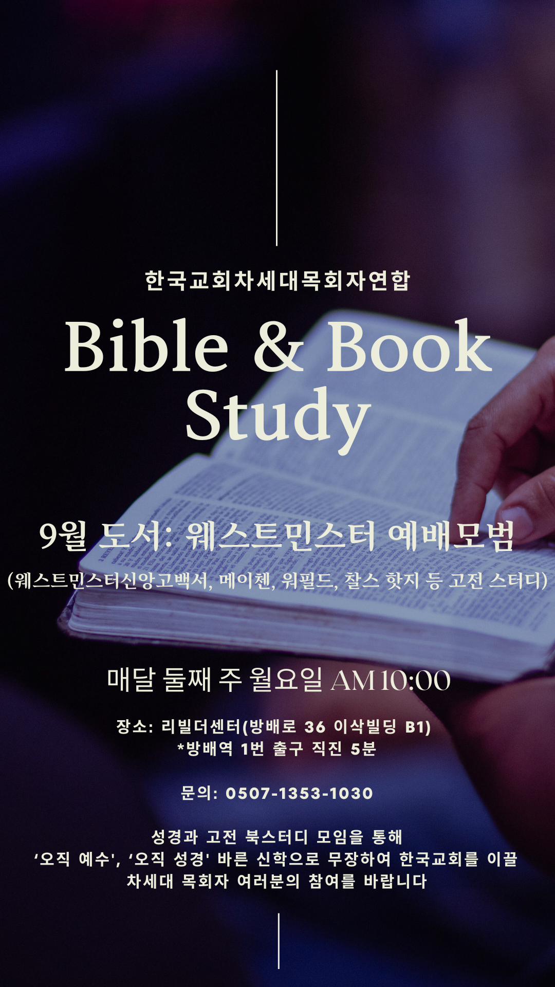 한국교회차세대목회자연합(이하 한차목)이 오는 8일 오전 10시, 서울 방배동 리빌더센터에서 성경·고전 북스터디 모임 ‘Bible & Book Study’를 개최한다.