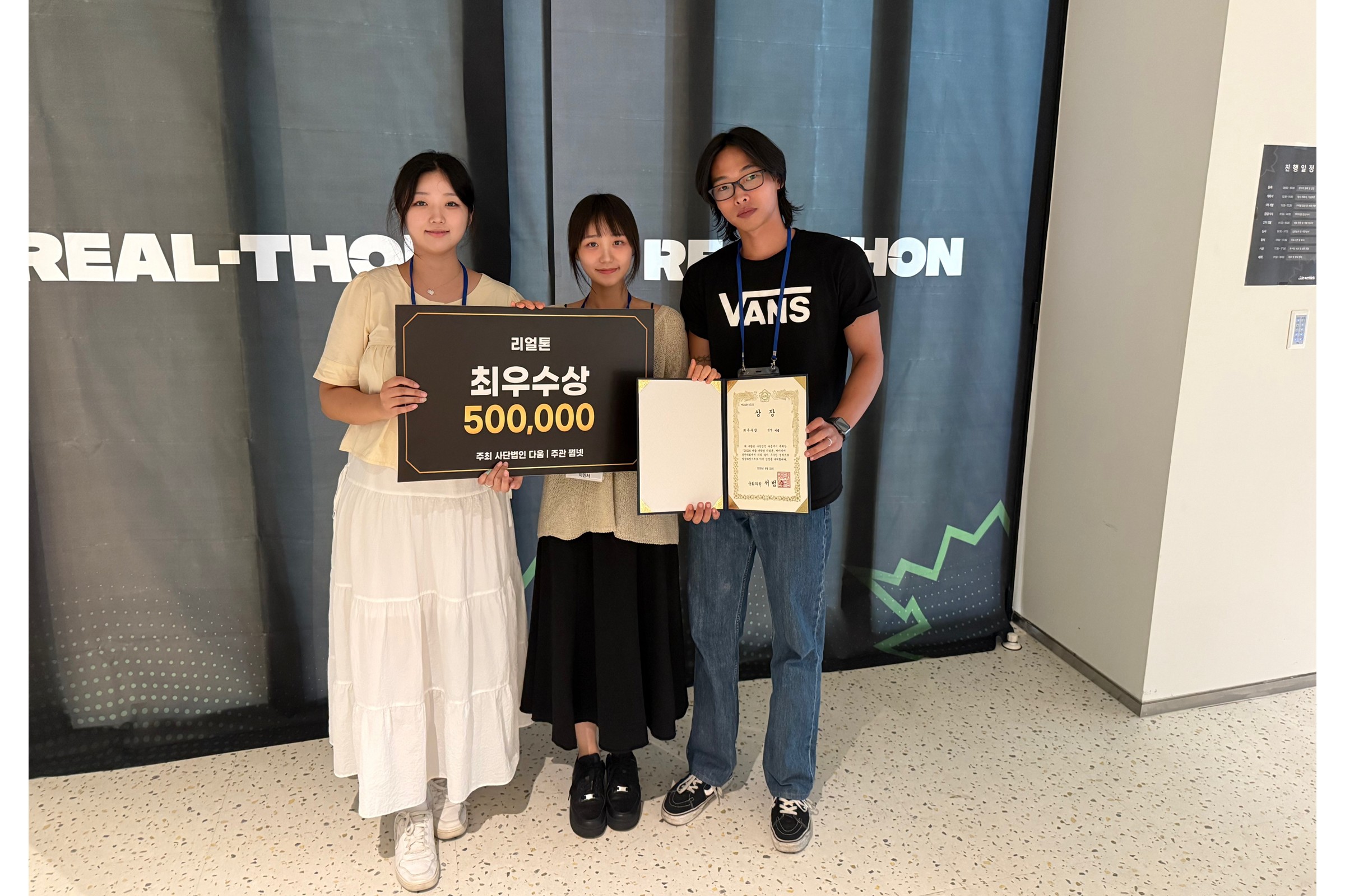 한동대학교(총장 최도성) 학생들로 구성된 이음팀(강희건·이민서·채정원)이 2025 다움 리얼톤 대회에서 최우수상(국회의원상)을 수상했다. 이번 성과는 한동대 창업교육의 경쟁력을 보여주는 사례로 평가된다.