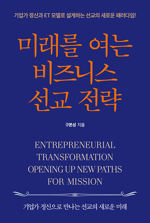 저자는 30년 이상 경영 컨설팅과 비즈니스 선교(BAM, Business as Mission) 현장에서 활동하며 쌓아 온 경험을 바탕으로, ‘기업가적 비즈니스 선교(ET: Entrepreneurial Transformation)’라는 독창적 모델을 제시한다. 그는 현재 ET 포럼의 대표로서 국내외 선교사와 평신도를 대상으로 창업 중심의 비즈니스 선교를 강의하며, 신앙과 기업가 정신을 아우르는 새로운 세대의 크리스천 리더를 양성하는 데 앞장서고 있다.