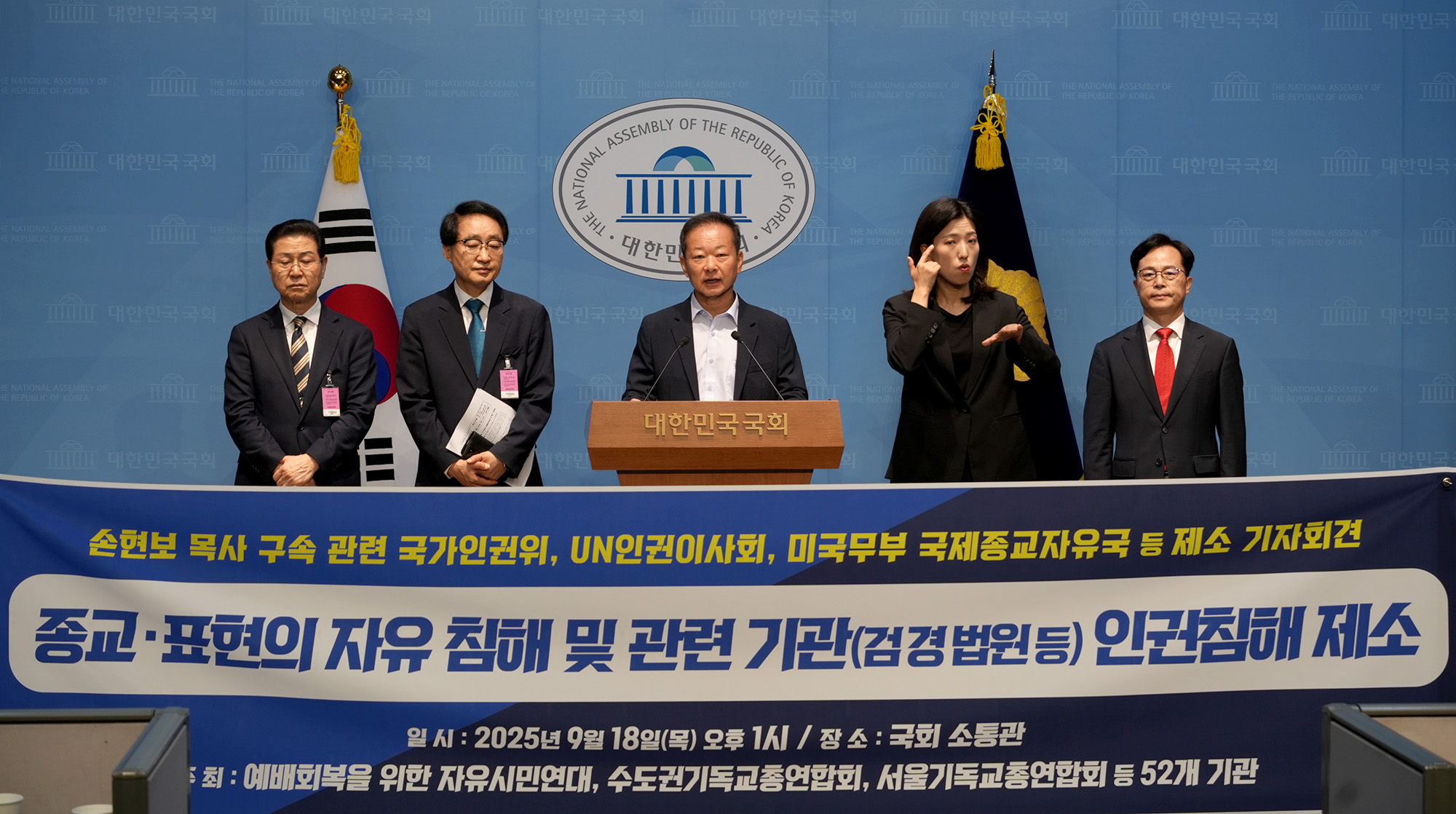 이들은 18일 오후 국회 소통관에서 기자회견을 갖고 손 목사의 인식 구속은 “‘종교 및 표현의 자유, 신체의 자유’를 명백히 침해한 것”이라며 이 같이 밝혔다.