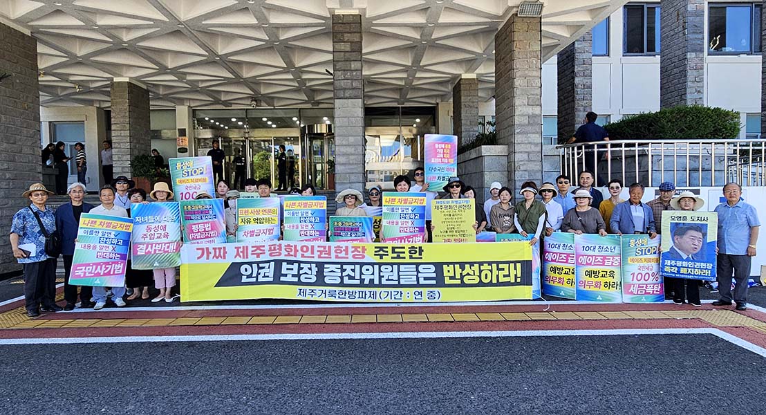 위원회 회의에 앞서 지역 시민단체들도 도청 앞에서 기자회견을 열고 반대 의사를 분명히 했다. 제주도민연대, 제주영락교회, 다이아나헤어스쿨, 한국청소년바로세움 제주연맹 등 단체 대표들은 공동 성명을 통해 “여론조사에서 도민 다수가 인권헌장 제정안에 반대 의사를 밝혔다”며 “도민 3분의 2 이상이 헌장 내용을 제대로 알지 못한 상황에서 비민주적으로 밀어붙이고 있다”고 지적했다.