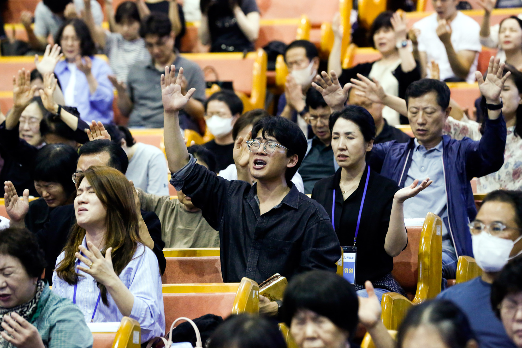 기도회 참석자들이 기도하고 있다. ©거룩한방파제