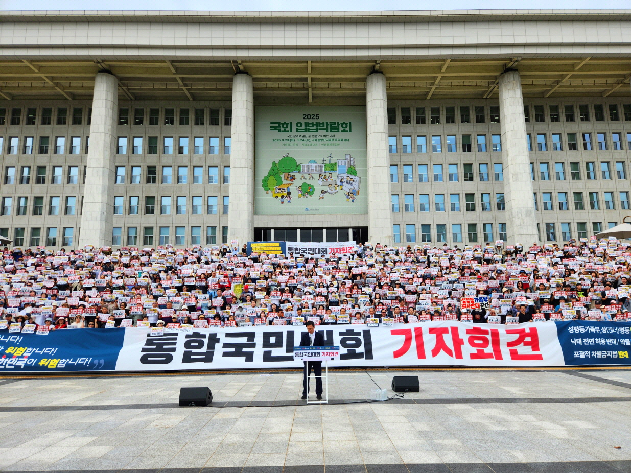 준비위는 “정부와 여당이 헌법상의 양심·신앙의 자유를 억압하고, 나라와 미래를 망치는 해악을 알면 국민 절대 다수가 반대하는, 성혁명을 법제화하는 법률과 정책들을 위와 같이 전방위적으로 추진하는 것에, 우리 통합국민대회는 우리와 뜻을 같이 해온 절대 다수 국민의 뜻을 따라 강력 반대하지 않을 수 없다”며 “9월 27일에는 국회 앞 여의도 의사당 대로에서 대규모 집회를 개최하여 성혁명을 법제화하려는 법과 정책에 반대하는 다수 국민들의 의사를 명백하게 보여줄 것”이라고 했다.