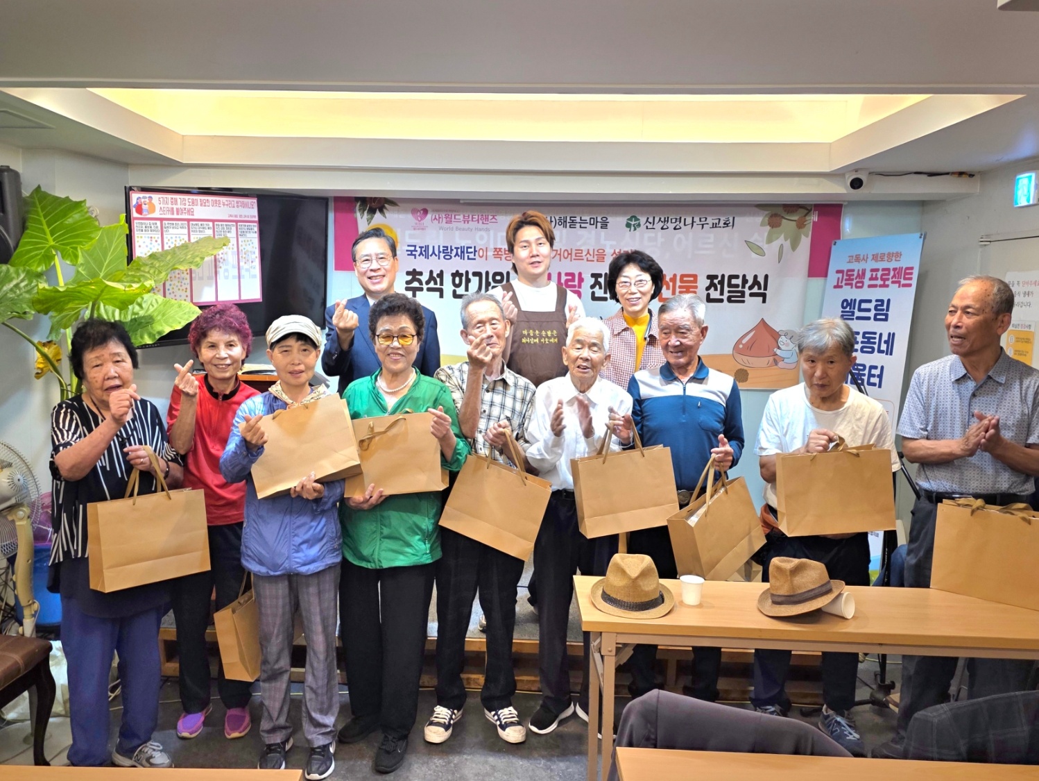 이번 행사는 장민욱 사무국장(해돋는마을)의 사회로, 고독생(生)프로젝트 일환으로 진행되었으며, 특별히 명절을 맞아 김순희 교수(월드뷰티핸즈 미용봉사단장)의 뷰티서비스와 함께 박형근 찬양선교사와 엘드림노인대학합창단의 특송, 국제사랑재단의 밥사랑잔치와 선물 전달이 있었다.