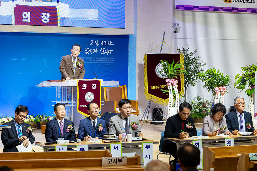 이어 취임패 증정, 권면, 격려사, 축사, 축하패 전달 등이 진행됐고, 교단 각 위원회의 보고와 실행위원회 조직, 향후 사업 계획 논의가 이어졌다. 주요 헌의안으로는 총대 자격 요건을 기존 목사 10년, 장로 5년에서 목사 5년, 장로 3년으로 낮춰 더 많은 총대가 참여할 수 있도록 했으며, ‘사무총장’ 명칭을 ‘총무’로 변경하기로 결의했다.