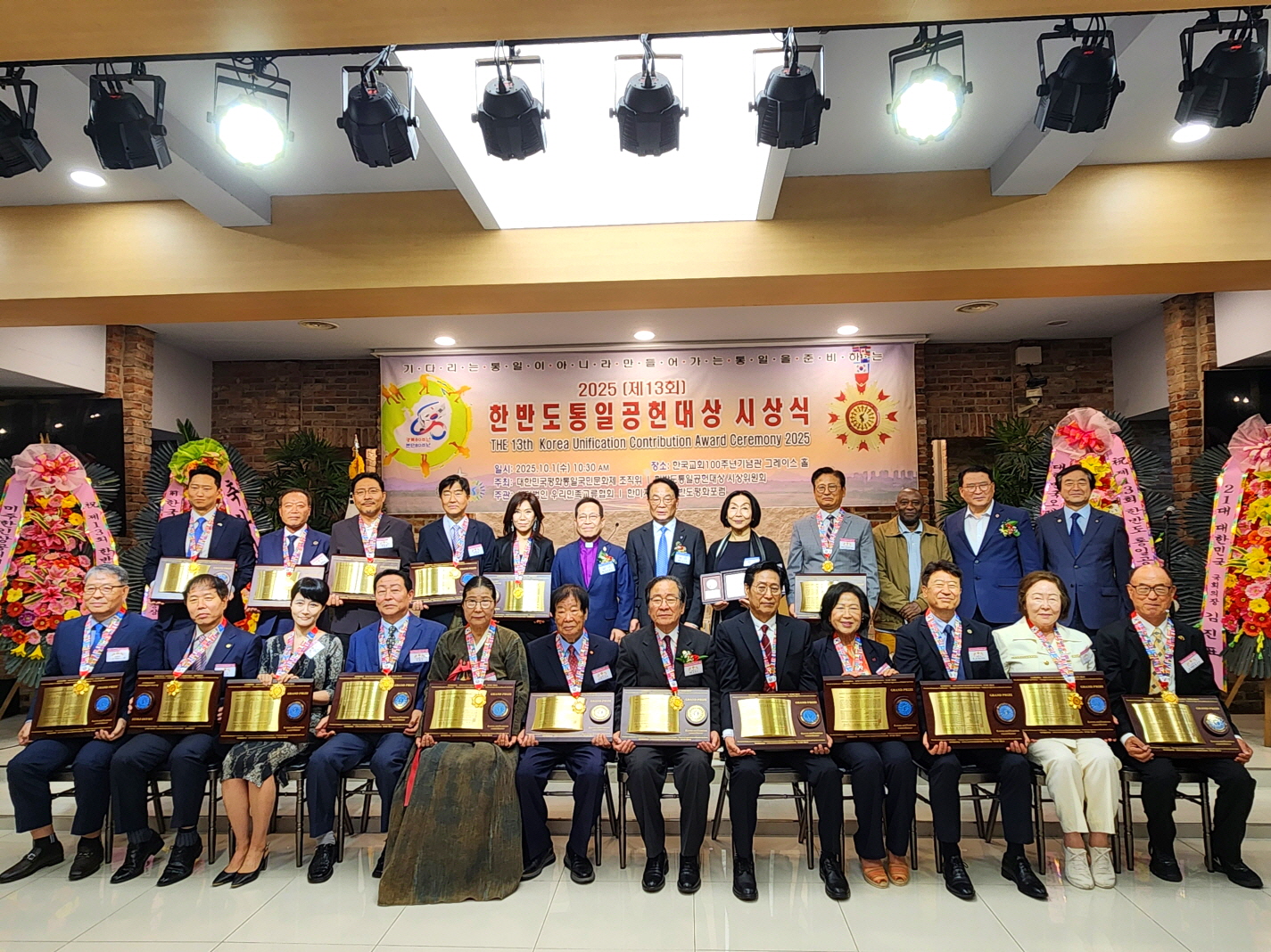 2025 제13회 한반도통일공헌대상 시상식이 1일 오전 서울 한국교회백주년기념관에서 열렸다. 이번 시상식은 대한민국평화통일국민문화제 조직위원회와 한반도통일공헌대상 시상위원회가 주최하고, 사단법인 우리민족교류협회와 한미지도자한반도평화포럼이 주관했다.