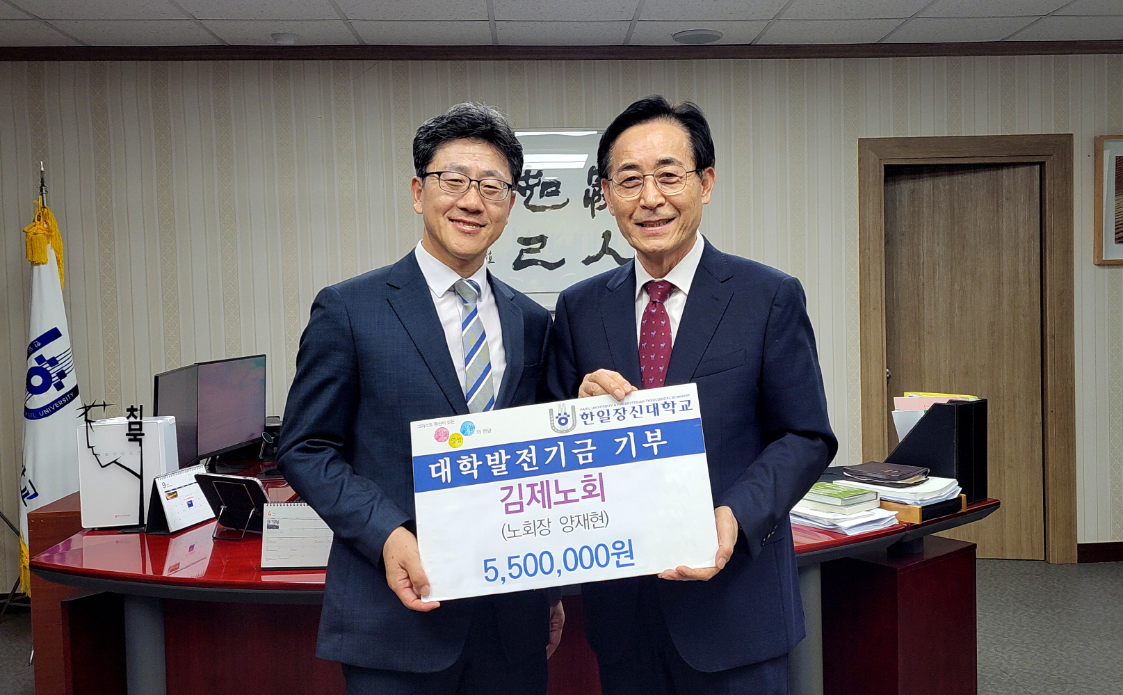 김제노회(노회장 양재현)가 한일장신대학교(총장 황세형)에 발전기금 550만원을 전달했다고 최근 밝혔다.