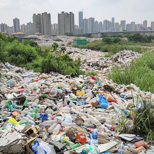사람들은 바다의 쓰레기 더미 속에서 헤엄치고 있다