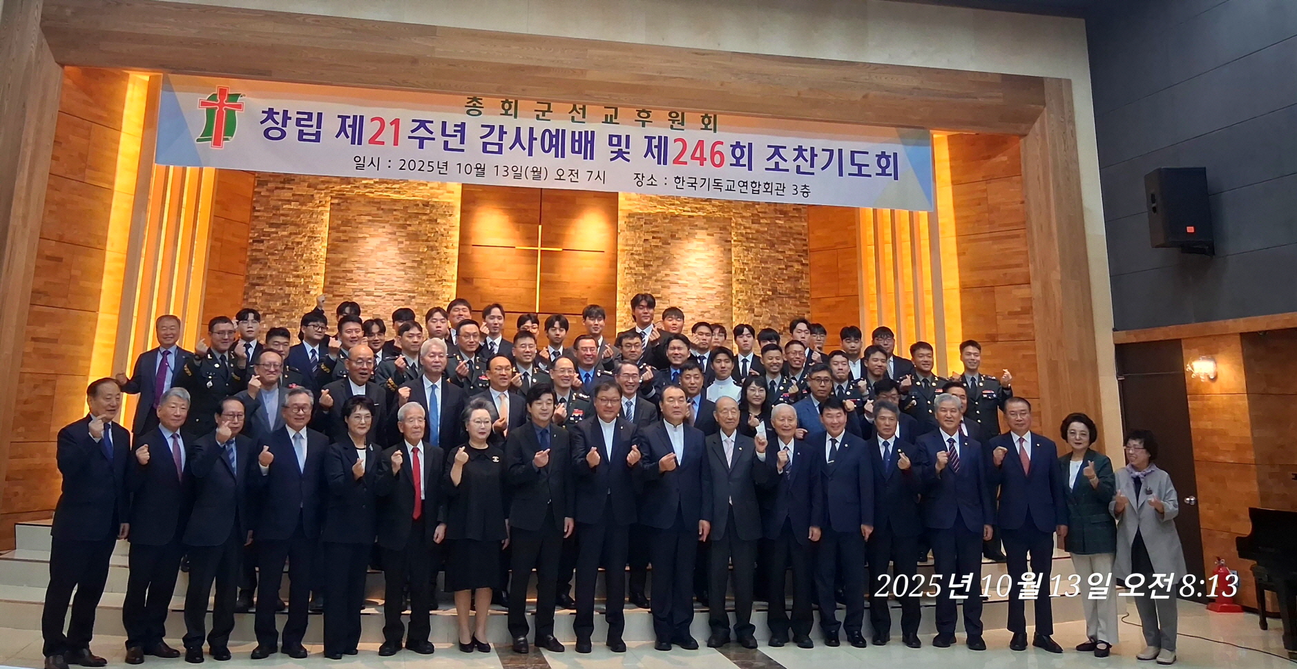 총회군선교후원회(회장 김운성 목사)는 13일 오전 서울 종로구 한국기독교연합회관에서 창립 제21주년 감사예배 및 제246회 조찬기도회를 개최했다. 이번 행사는 1부 예배와 2부 축하 및 조찬 순서로 진행됐다.
