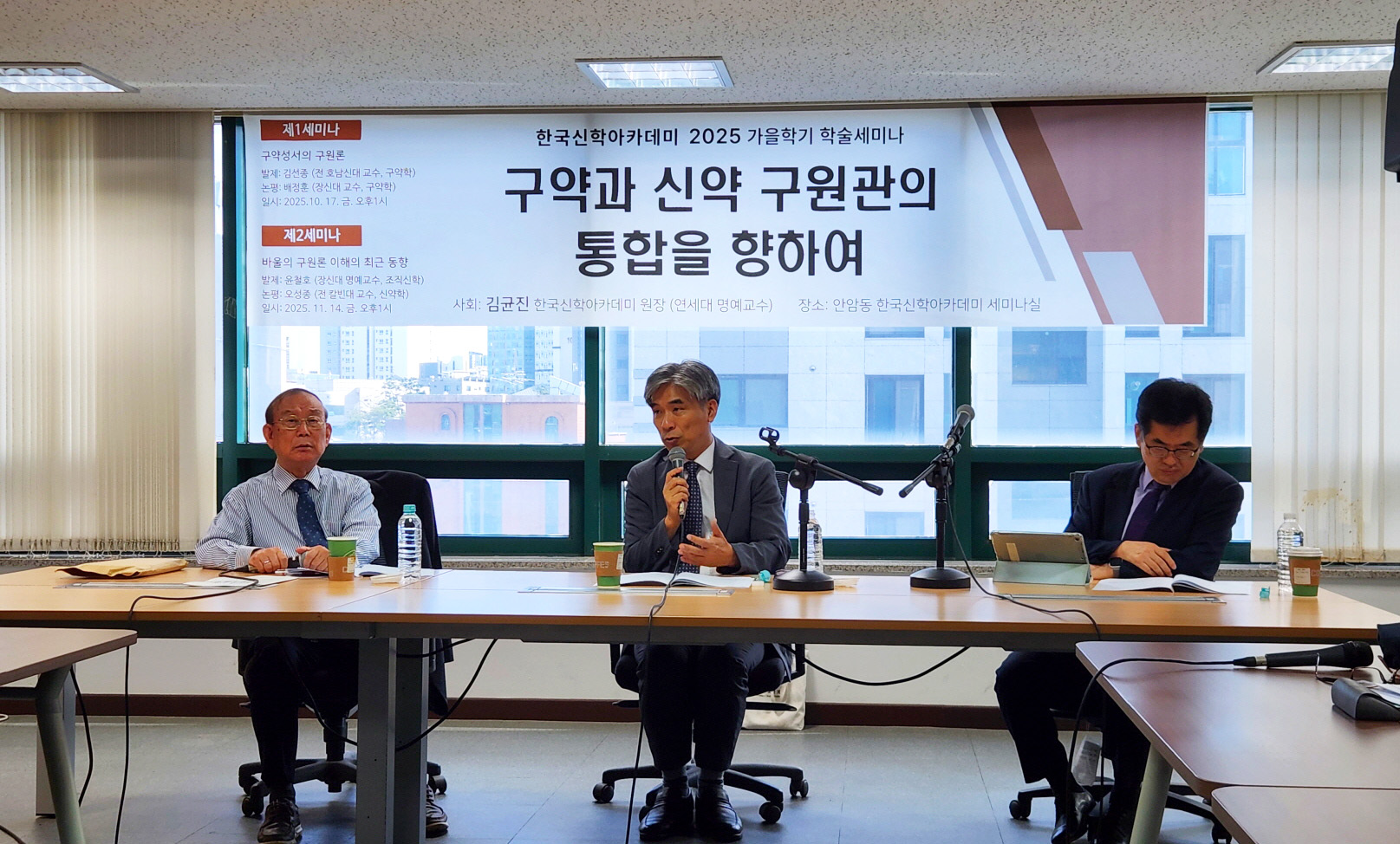한국신학아카데미(원장 김균진 박사)가 17일 오후 1시 서울 안암동 세미나실에서 ‘구약과 신약 구원관의 통합을 향하여’라는 주제로 2025년 가을학기 학술세미나를 개최했다.