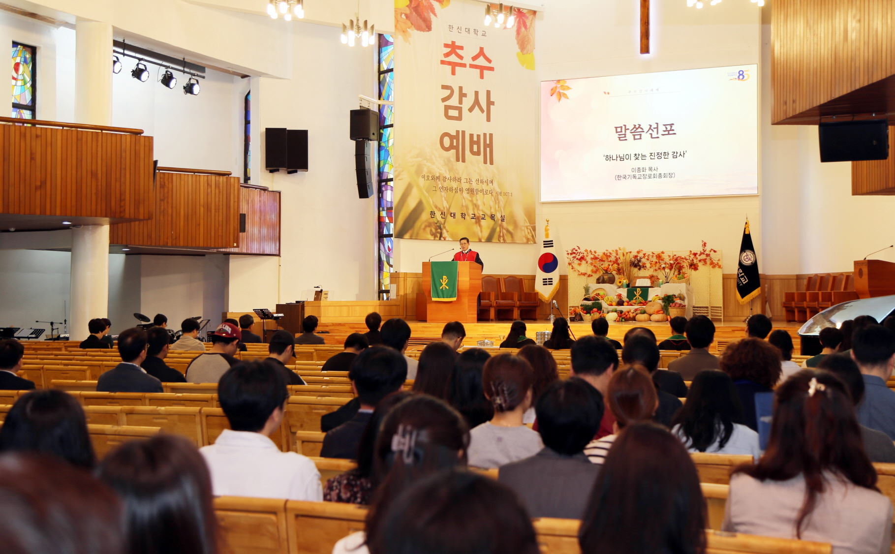 강성영 총장은 인사말에서 “‘감사(Thank)’와 ‘생각(Think)’이 같은 어근 ‘TONG’에서 나왔다는 사실이 시사하듯, 감사는 생각에서 비롯된 마음의 표현”이라며 “한신다움이란 한신의 정체성과 하나님께서 세우신 뜻을 깊이 생각하고 그에 감사하며 살아가는 태도이다. 또 한신의 100년을 향해 나아가는 여정 속에서 생각하고 감사하는 공동체가 되길 바란다”고 전했다.