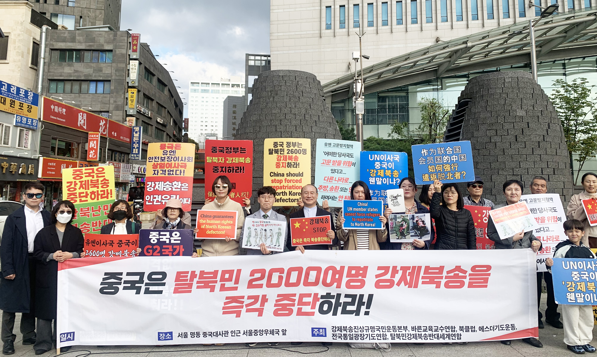 이에 이들은 중국 정부를 향해 △유엔 난민협약과 고문방지협약에 따라 ‘강제송환금지 원칙’을 준수하라 △강제 구금된 2000여명의 탈북민을 모두 석방하라 △중국 내 탈북민의 인권을 존중하고 UN난민 지위를 보장하라 △탈북민이 제3국으로 안전하게 갈 수 있도록 허용하라고 촉구했다.