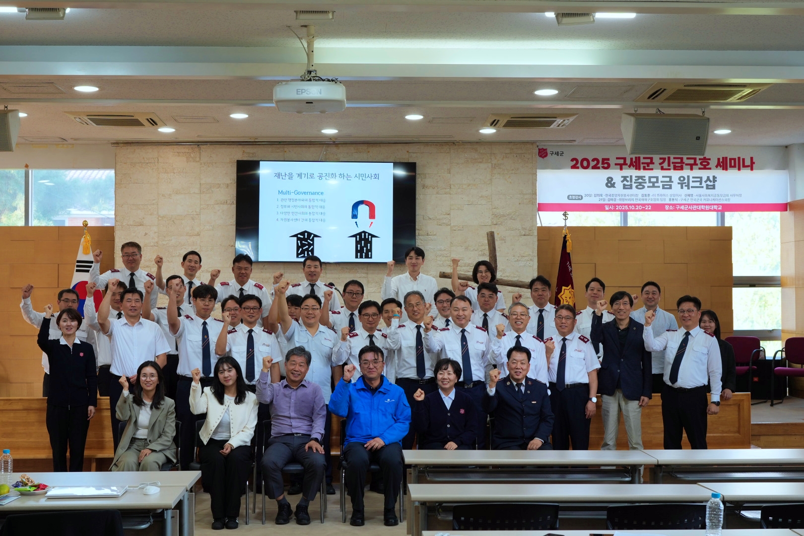 구세군한국군국(사령관 김병윤)이 10월 20일부터 22일까지 3일간 경기도 과천시 구세군사관대학원대학교에서 ‘2025 구세군 긴급구호 세미나’를 성공적으로 개최했다. 이번 세미나는 급변하는 기후 환경 속에서 증가하는 각종 재난에 효과적으로 대응하기 위해 교회와 지역사회, 민간단체가 함께 협력할 수 있는 방안을 모색하고 현장 실습을 통해 대응 역량을 강화하기 위해 마련됐다.