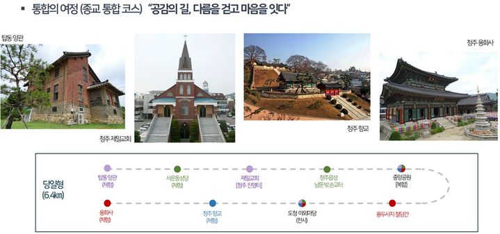 핵심 콘텐츠인 ‘어울리길’은 청주 도심 내 성당, 사찰, 교회, 향교를 하나의 동선으로 잇는 통합코스 ‘공감의 길’과 함께, 제천·보은·음성 등 지역별 종교 유적지를 따라 걷는 특화코스 ‘은총의 길(천주교)’, ‘마음쉬는 길(불교)’, ‘말씀의 길(개신교)’로 구성됐다. 프로그램은 당일형과 체류형으로 운영돼 참가자들이 각 종교의 문화와 전통을 직접 체험하며 이해할 수 있도록 구성됐다.