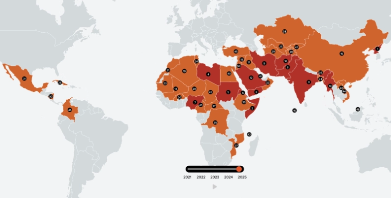 영국 크리스천투데이(CT)는 전 세계에서 종교의 자유가 빠르게 후퇴하고 있다는 경고가 나왔다고 23일(현지시각) 보도했다. 가톨릭 교황청 산하 국제 구호단체 ‘에이드 투 더 처치 인 니드(Aid to the Church in Need, ACN)’가 최근 발표한 『2025 세계 종교자유 보고서(Religious Freedom in the World 2025)』에 따르면, 전 세계 인구의 64.7%인 약 54억 명이 종교의 자유가 심각하게 제한되거나 완전히 박탈된 국가에서 살고 있는 것으로 나타났다.