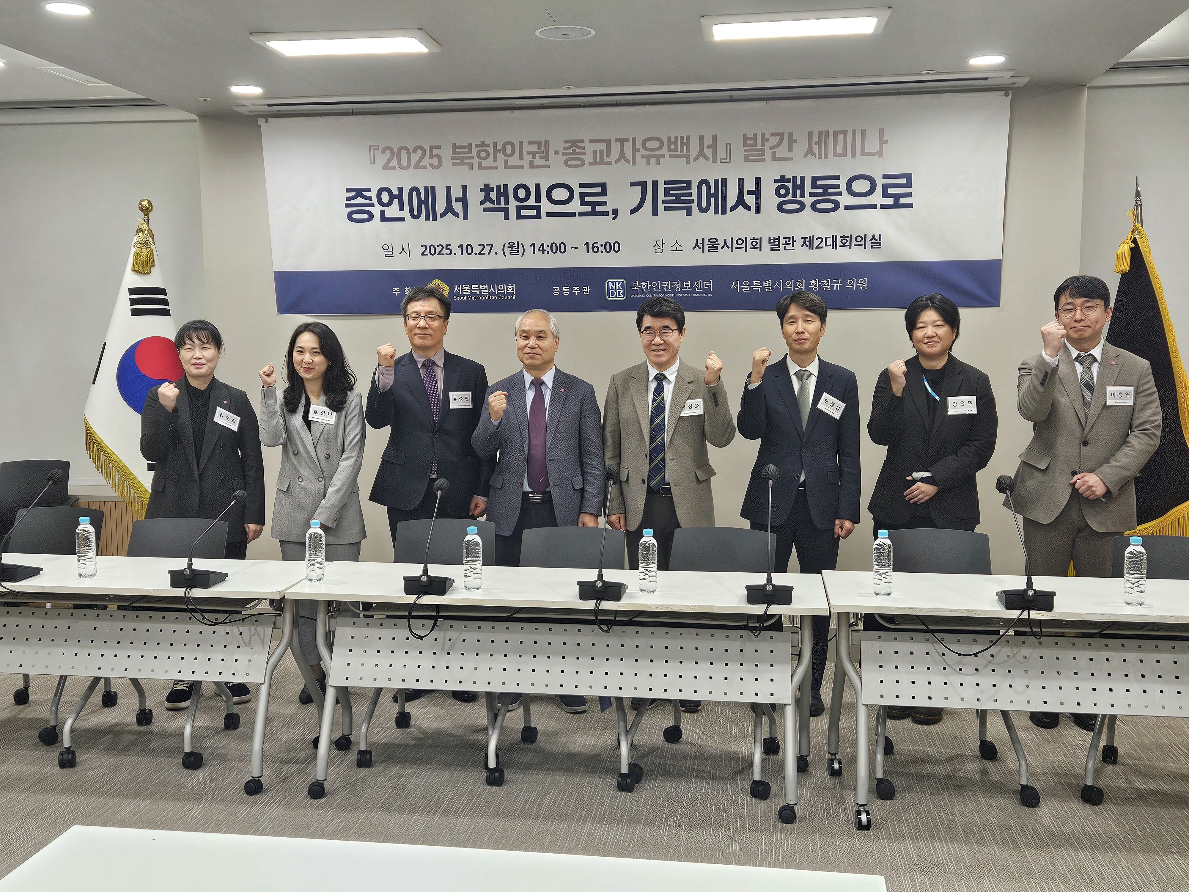 북한인권정보센터(센터장 송한나, 이하 NKDB)가 27일 오후 서울시의회 별관에서 '2025 북한인권·종교자유백서 발간 기념 세미나'를 개최했다.
