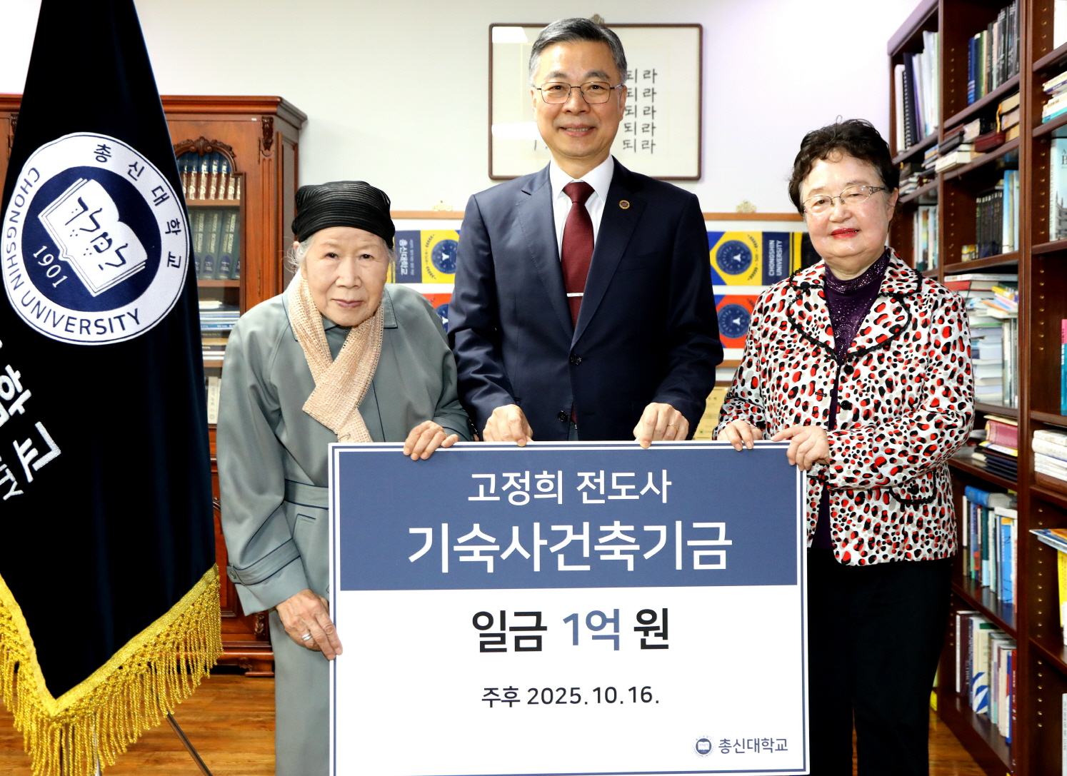 총신대학교(총장 박성규)는 지난 16일 고정희 전도사(89세)로부터 1억 원의 기숙사 건축기금을 전달받았다고 최근 밝혔다.
