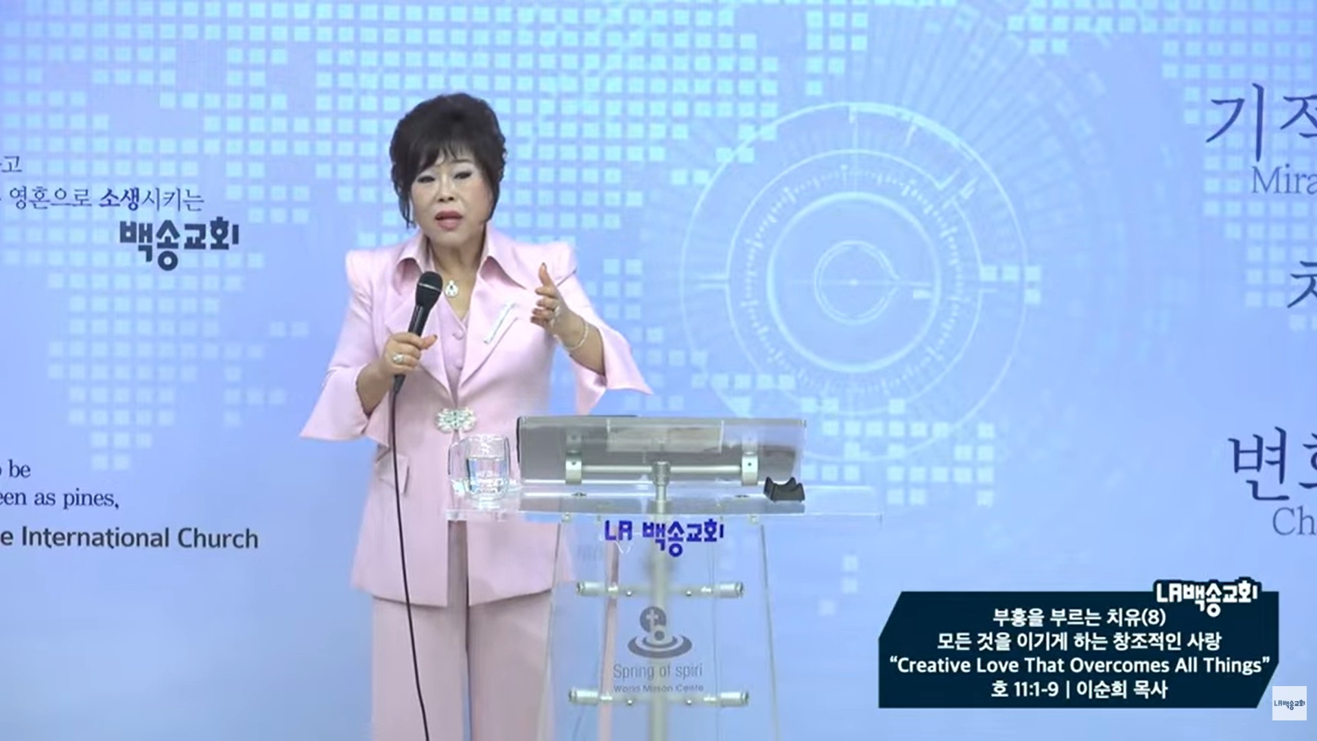 이날 메시지에서 이순희 목사는 호세아 11장 1~9절을 본문으로, 무조건적 사랑만이 인간을 살리고 변화시키는 유일한 힘임을 선포했다.
