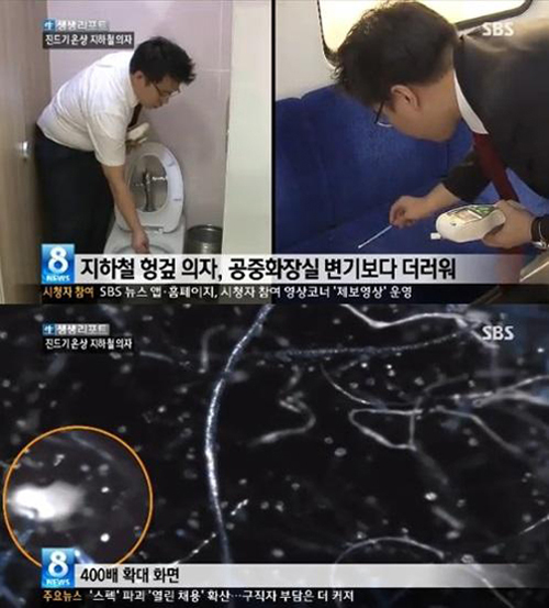 지난 8일 SBS의 보도에 따르면, 지하철 1호선~9호선 지하철 헝겊 의자를 무작위로 조사한 결과 최소 4000RLU(relative Light Unit:오점도 측정 단위로 물체에 묻은 유기화합물의 농도를 측정하는데 수치가 클수록 오염도가 높다고 판단)에서 최대 7000RLU 사이로 조사됐다.
