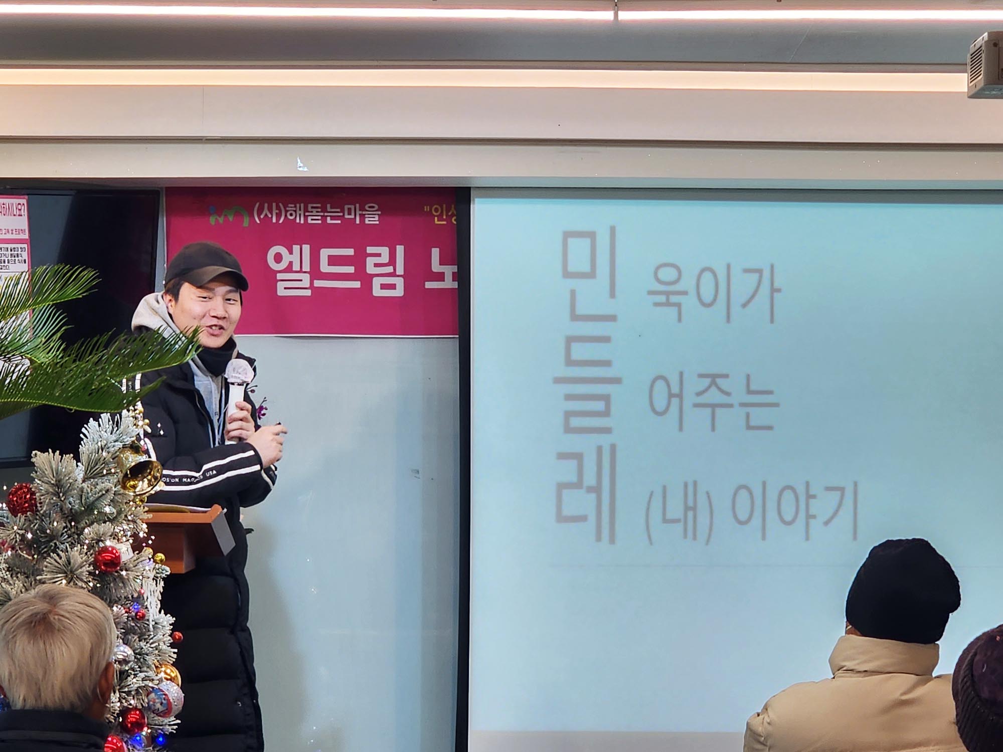 독거노인 및 쪽방촌 거주 어르신을 섬기는 소셜서비스 사단법인 월드뷰티핸즈(회장 최에스더 신한대 교수)와 무료급식 사단법인 해돋는마을(이사장 장헌일 신생명나무교회 목사)이 28일 엘드림노인대학에서 민들레 토크쇼 첫 강의를 개최했다.