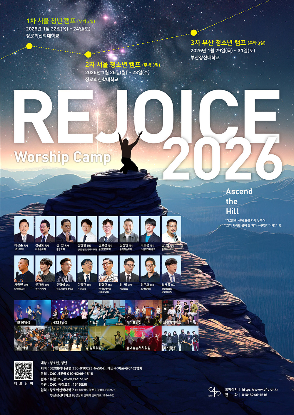 한국교회의 청년, 청소년 예배 회복을 위해 시작된 ‘리조이스 예배캠프’가 2026년 1월, 서울과 부산에서 총 3차례에 걸쳐 열린다.