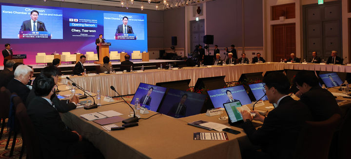 최태원 회장은 개회사에서 “한일 간 협력이 선언에 그치지 않기 위해서는 새로운 아이디어를 직접 실험하는 용기가 필요하다”며 “에너지 의존도가 높은 양국이 공동 구매 체계를 구축하거나, 저출생·고령화 대응을 위한 의료 시스템을 공유하면 경제·사회적 비용을 줄일 수 있다”고 강조했다. 그는 특히 양국 교류를 ‘한일판 솅겐조약’ 수준으로 확장하자며, 한국과 일본을 동시에 방문하는 해외 관광상품 개발을 제안했다.