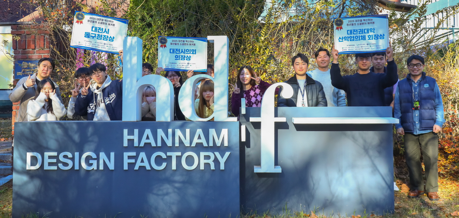 한남대는 9일, 지난 9월부터 11월까지 열린 ‘2025 대전을 혁신하는 청년들의 소셜벤처 해커톤 본선 경진대회’에서 디자인팩토리 소속 3개 팀이 모두 수상했다고 밝혔다. 이 가운데 한 팀은 대전시의회 의장상을 받았다.