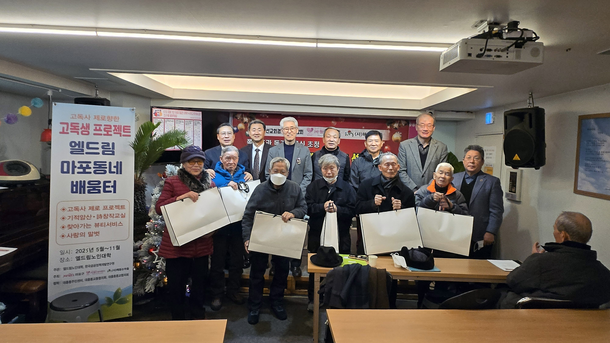 크리스마스를 앞두고 쪽방촌 독거 어르신들을 위한 ‘사랑의 밥사랑과 선물 전달식’이 열렸다. ©해돋는마을
