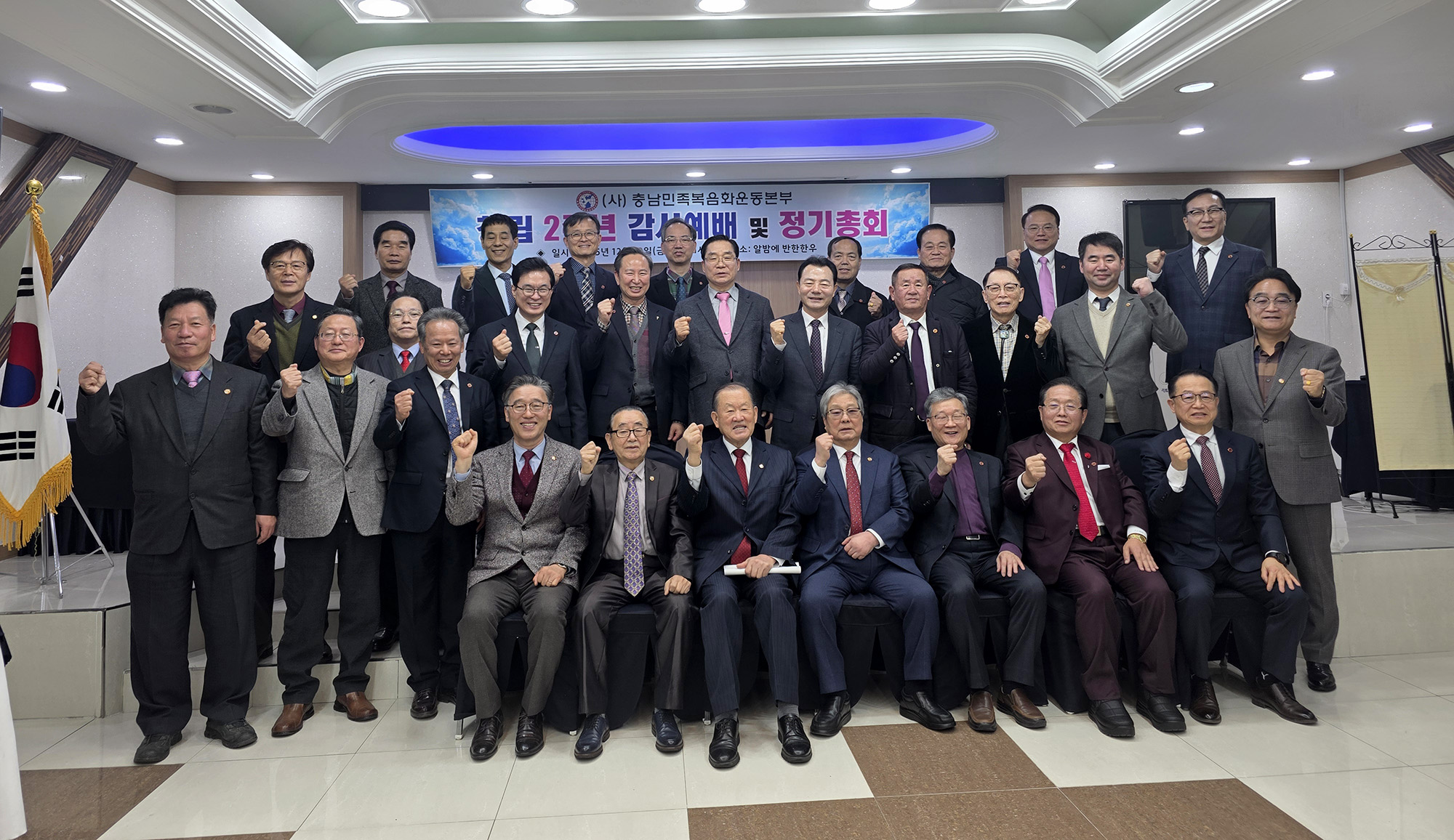 충남민족복음화운동본부 창립 2주년 감사예배 및 정기총회 참석자들이 기념촬영을 하고 있다. ©민족복음화운동본부